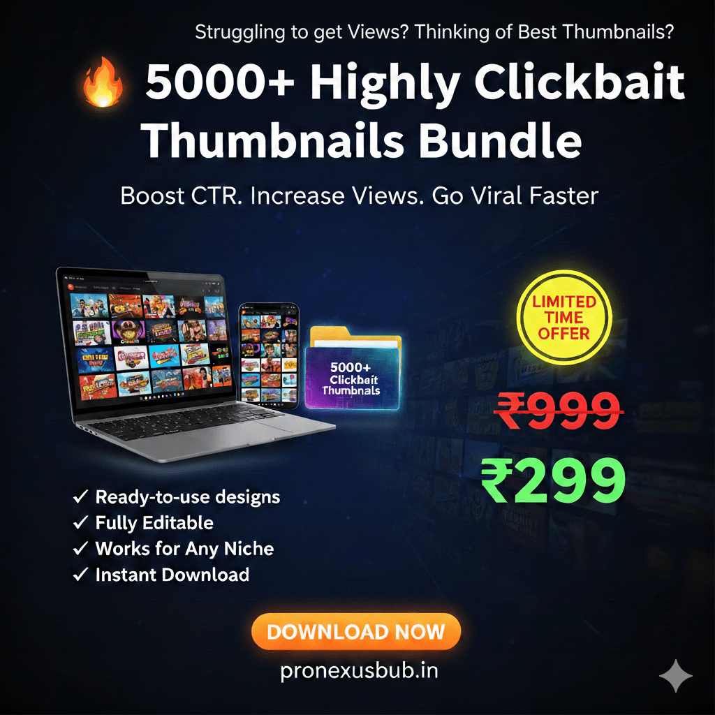 “I used to pay freelancers ₹300–₹500 per thumbnail. This bundle saved me thousands of rupees. There’s a design for every niche. Highly recommended for serious creators.”